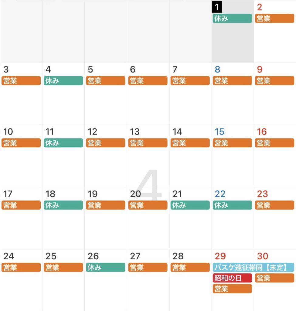4月の日程です🌸